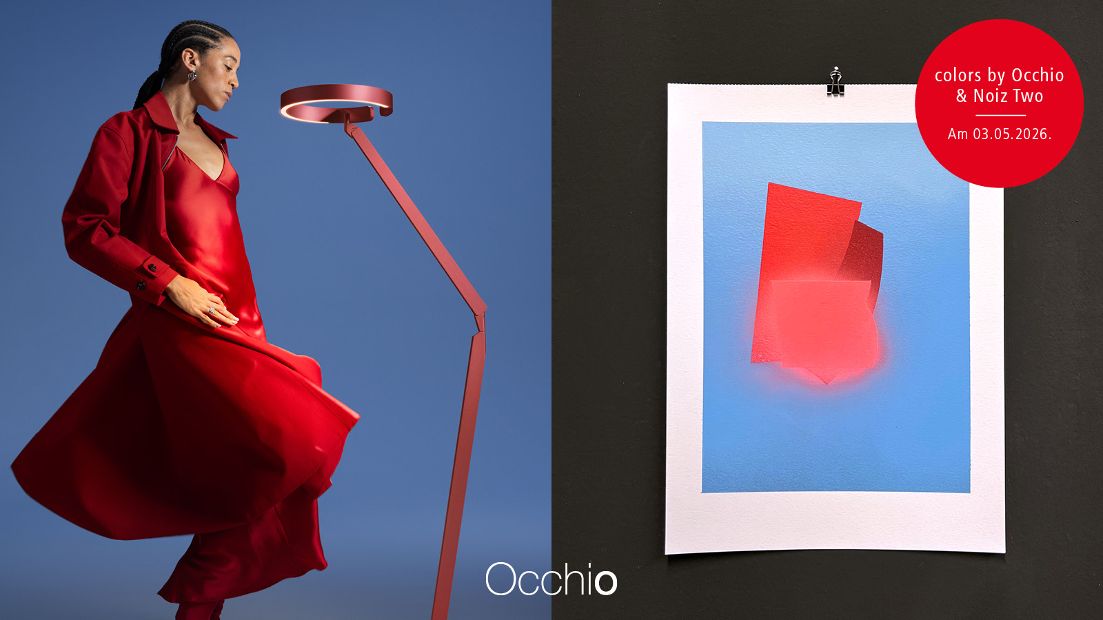 Erleben Sie die neue capsule collection » colors by Occhio «. Entdecken Sie, wie farbige Lichtwelten Räume definiert und individuelle Akzente setzt – inszeniert im Dialog mit Live-Art von Noiz Two.